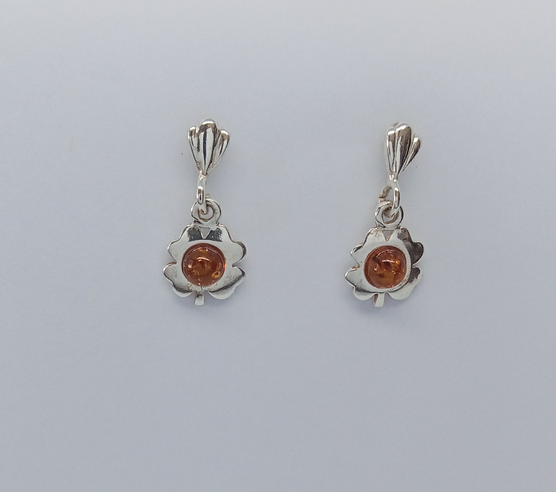 ARETES COLGANTES DE POSTE EN FORMA DE TRÉBOL CON ÁMBAR CIRCULAR