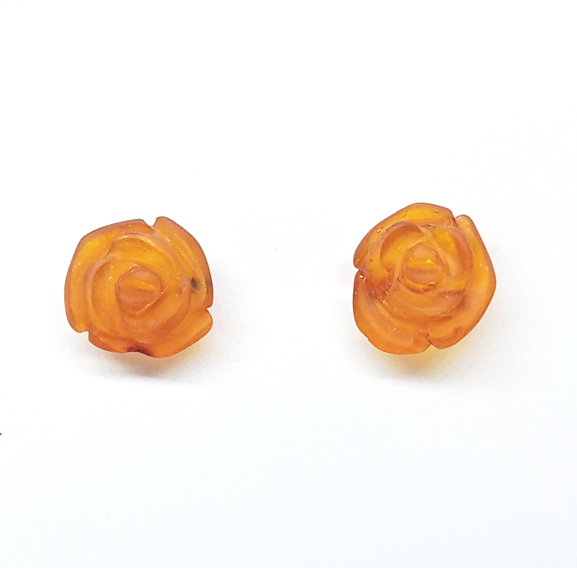 ARETES PEGADOS DE POSTE CON ÁMBAR TALLADO EN FORMA DE ROSA