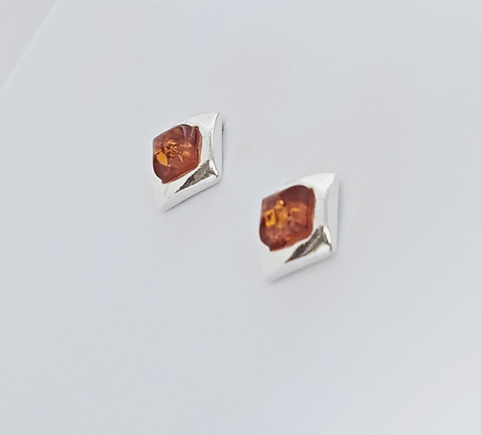 ARETES PEGADOS DE POSTE CON CUADRO DE ÁMBAR Y BISEL DE PLATA
