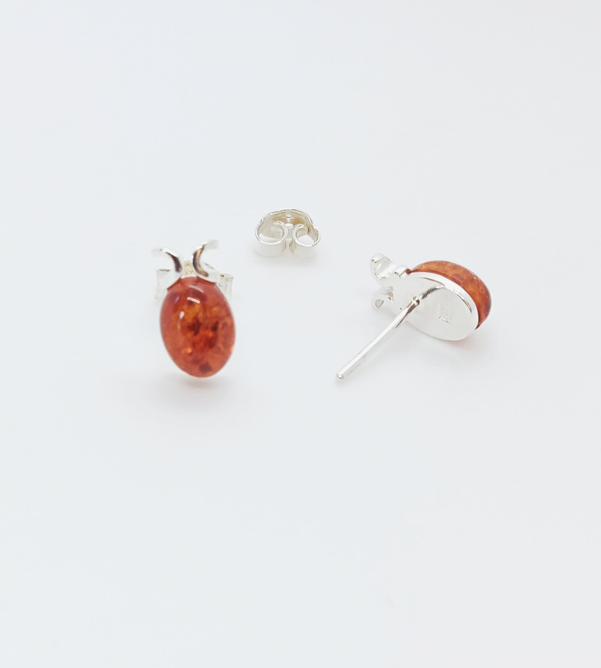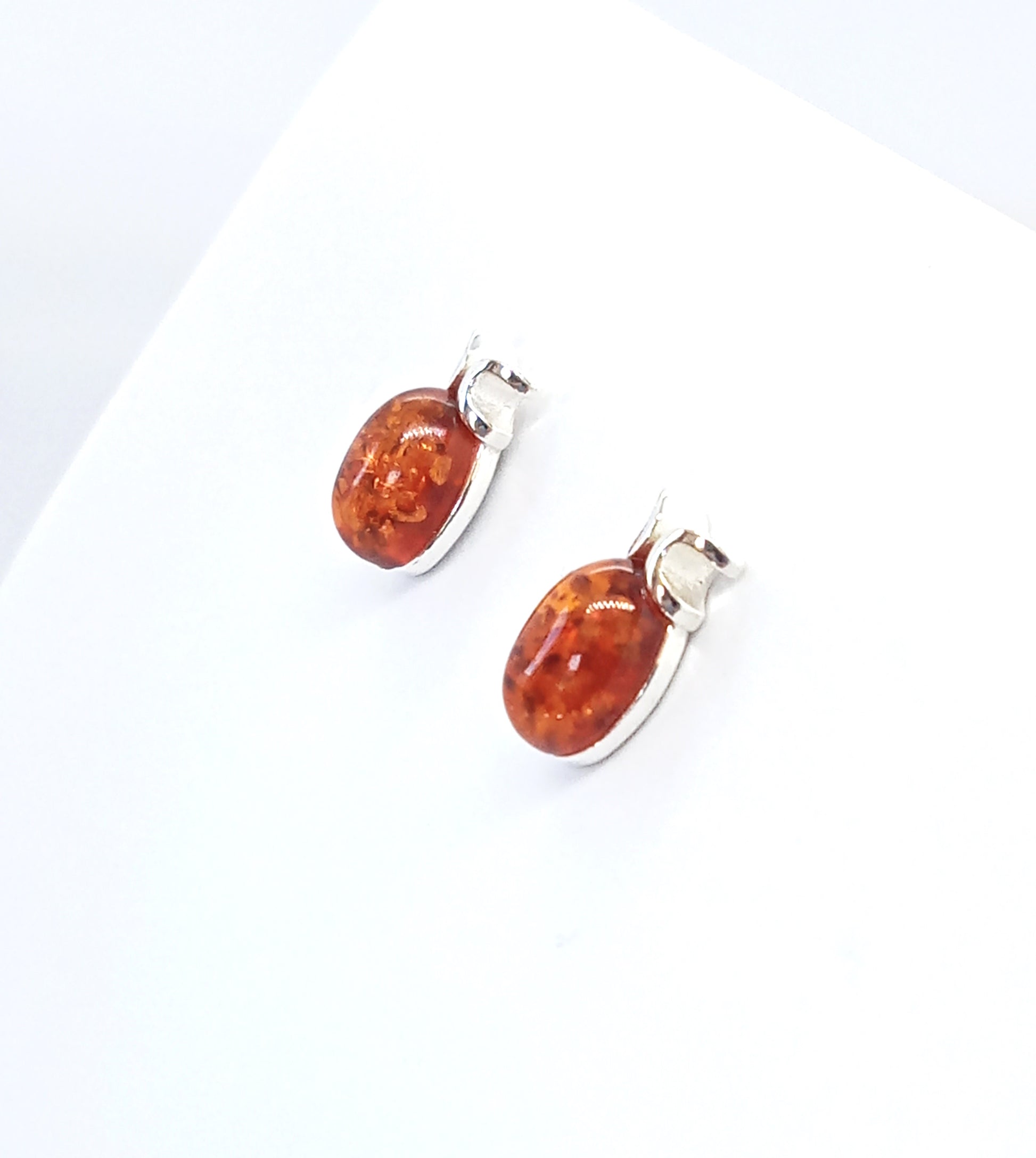 ARETES PEGADOS DE POSTE CON ÓVALO DE ÁMBAR Y PLATA EN MODERNO DISEÑO