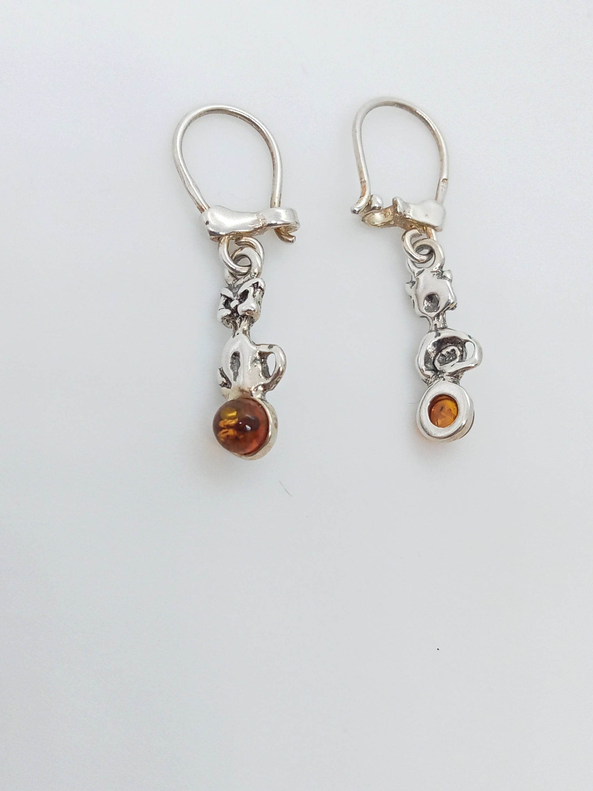 ARETES COLGANTES DE GANCHO CON BOLA DE ÁMBAR Y PLATA EN DISEÑO DE GATO