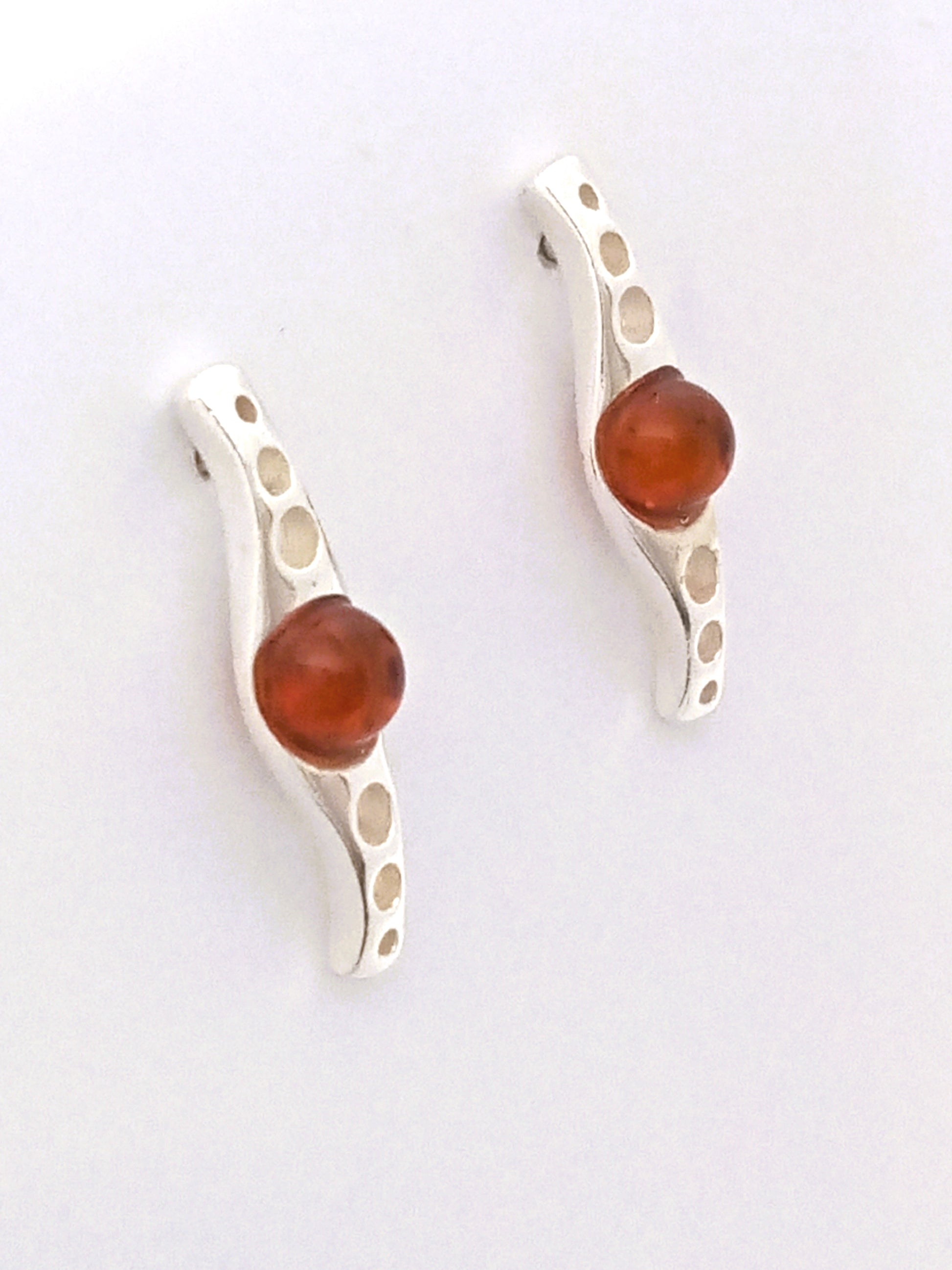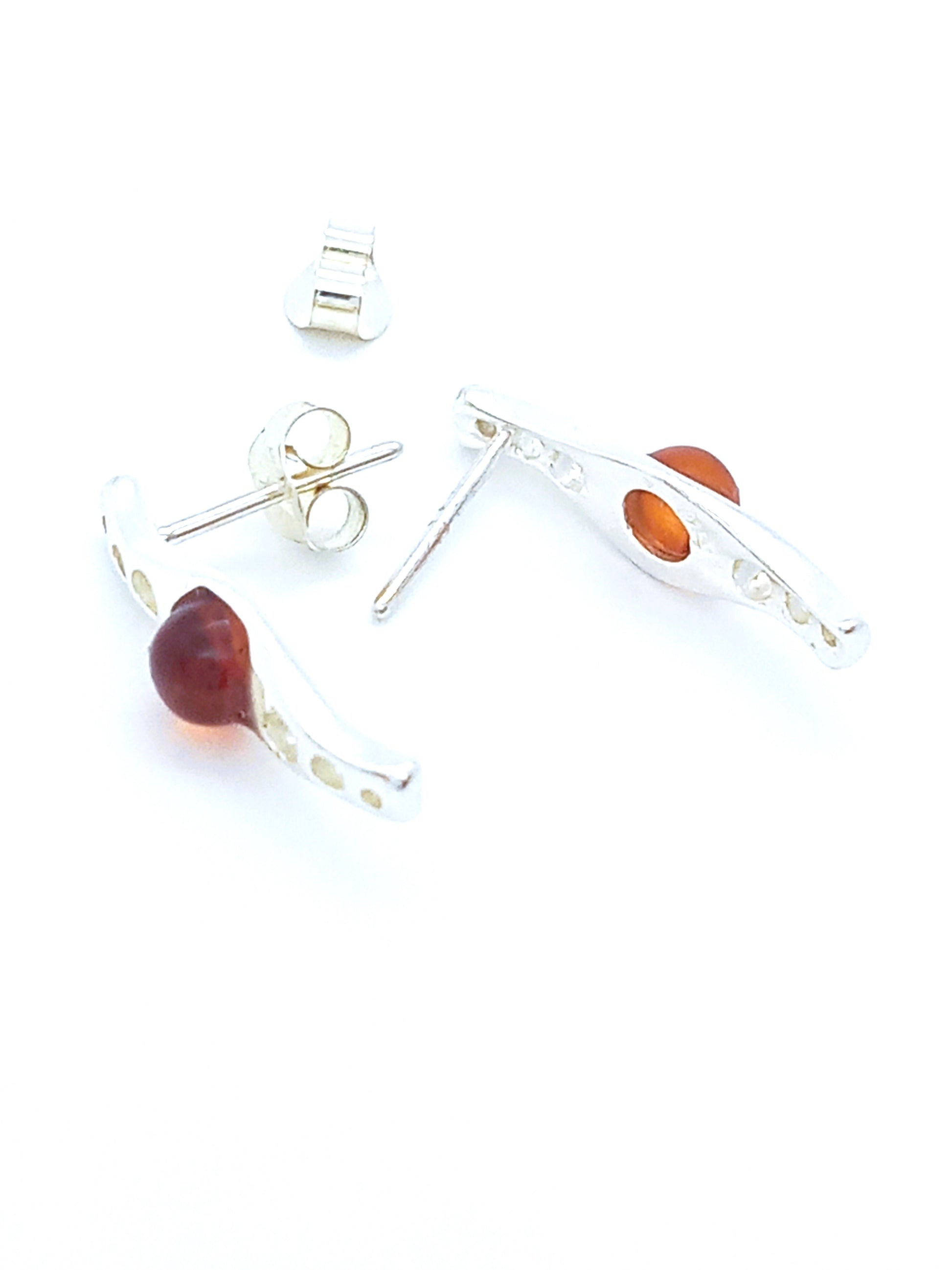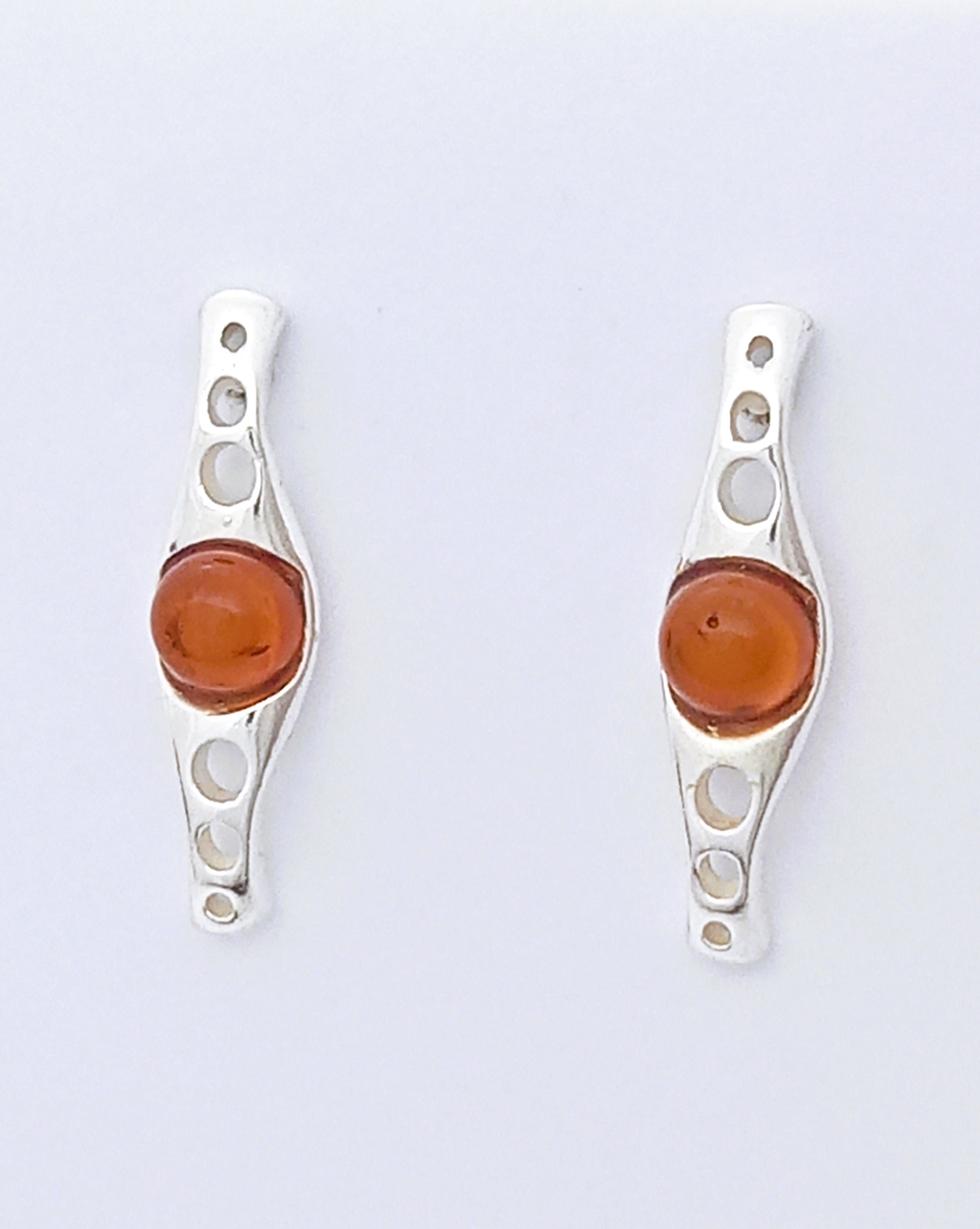 ARETES PEGADOS DE POSTE CON ÁMBAR CIRCULAR Y DISEÑO DE PLATA ALARGADO CON CIRCULOS