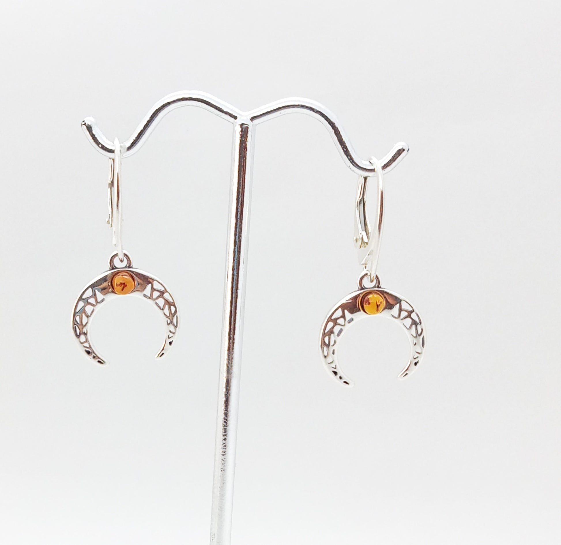 ARETES COLGANTES DE GANCHO CON SÍMBOLO DE PLATA Y ÁMBAR CIRCULAR
