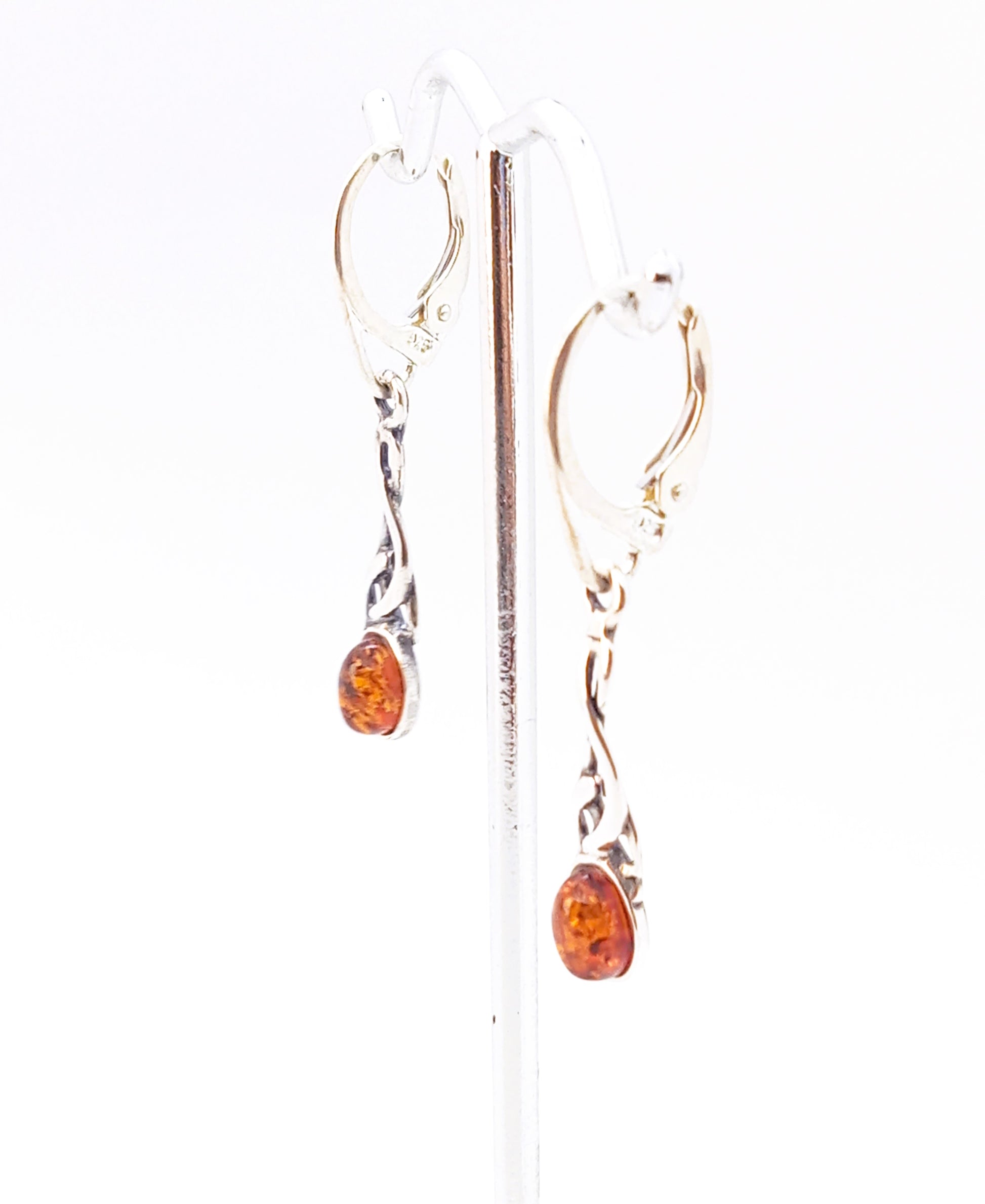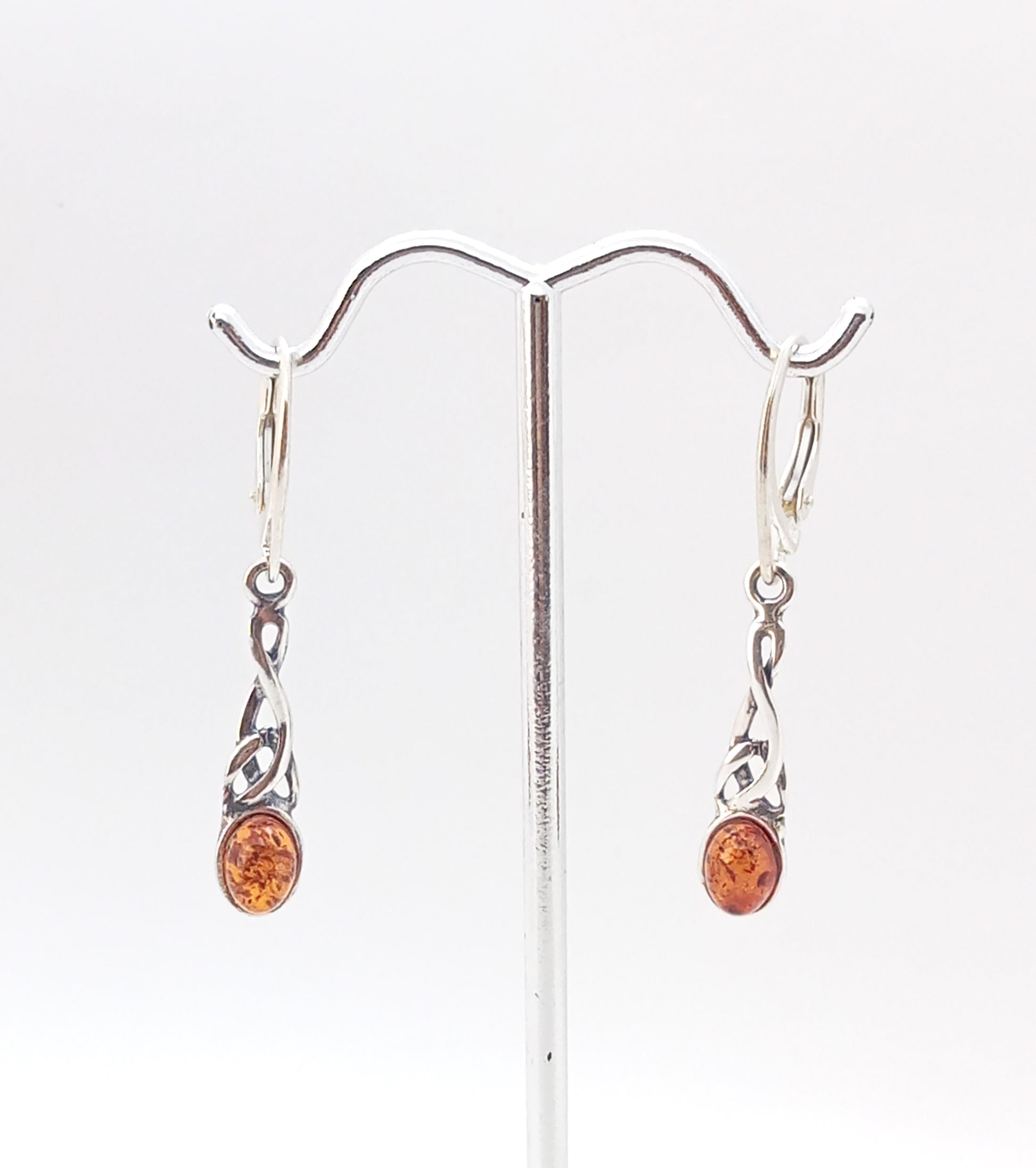 ARETES COLGANTES DE GANCHO CON GRECAS DE PLATA Y ÁMBAR OVALADO