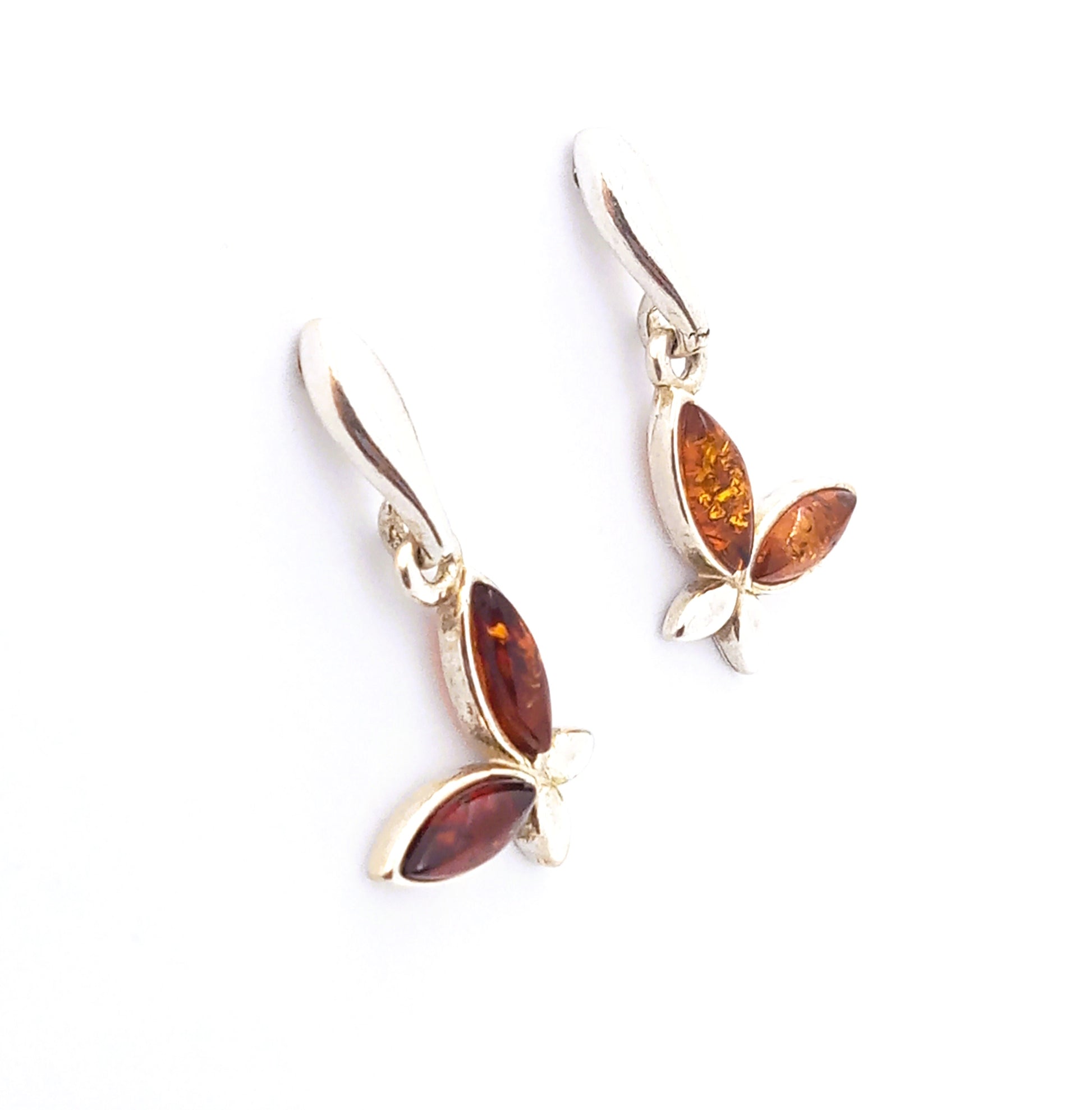 ARETES COLGANTES DE POSTE CON MARIPOSA DE PLATA CON ALAS DE ÁMBAR