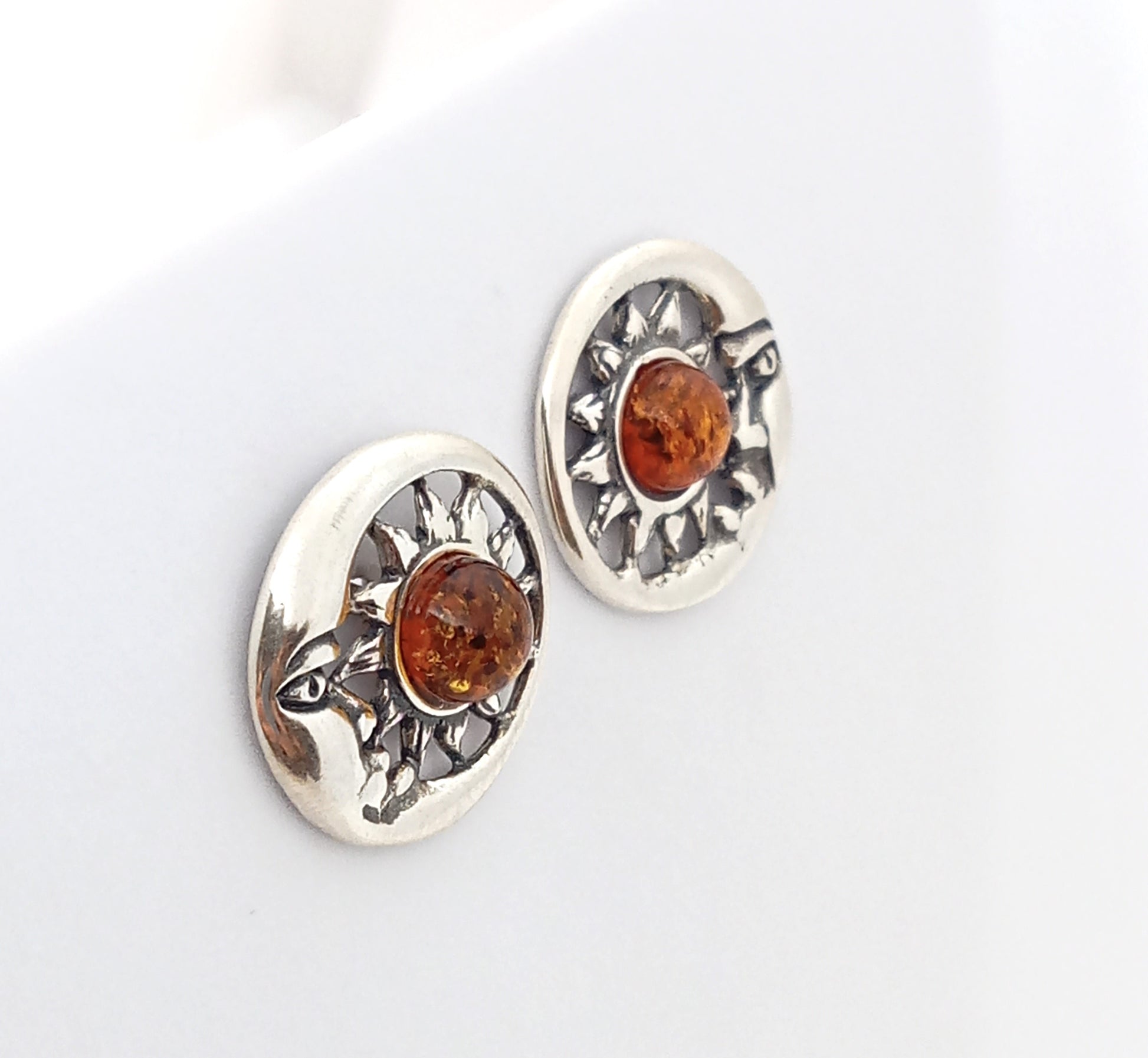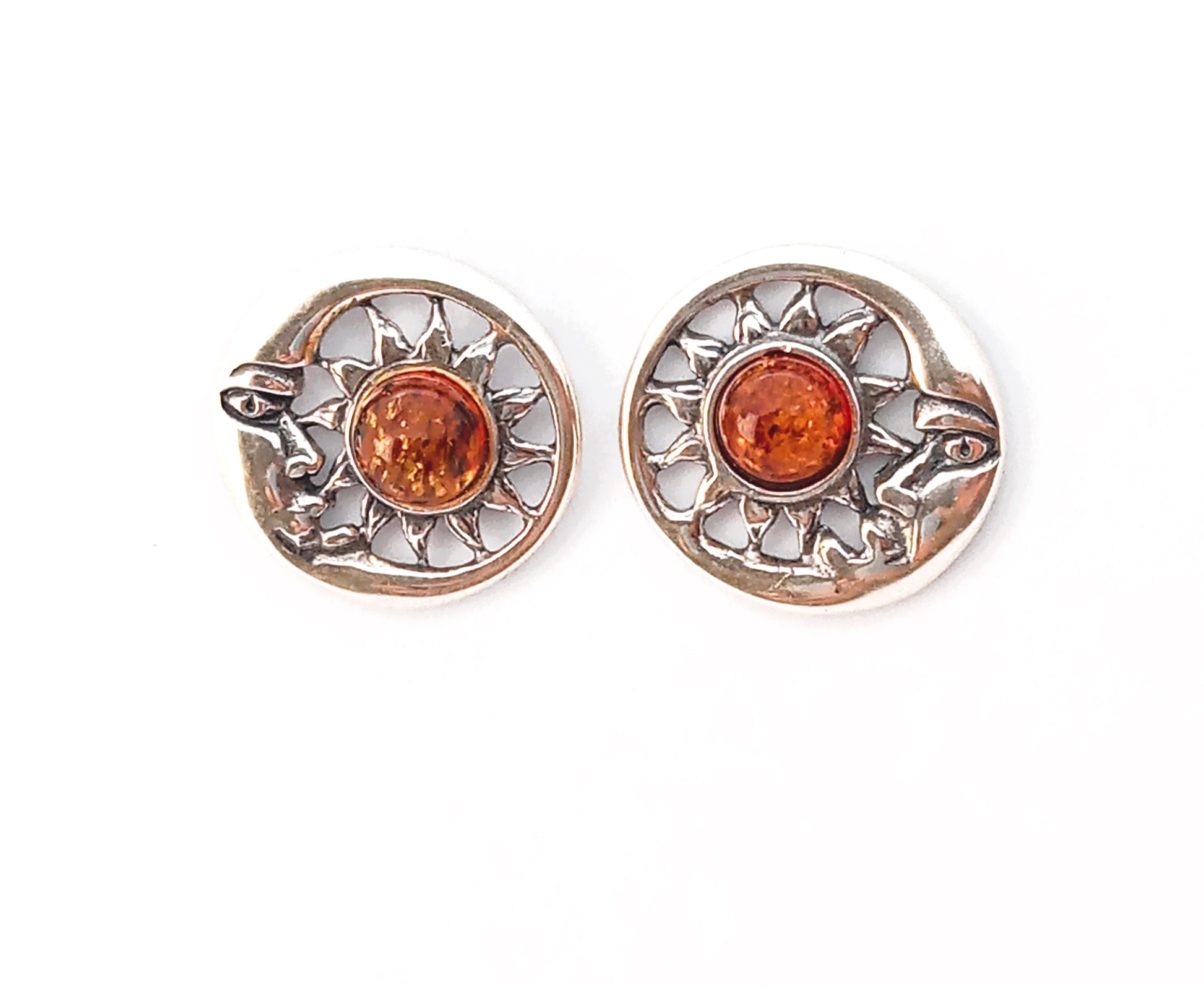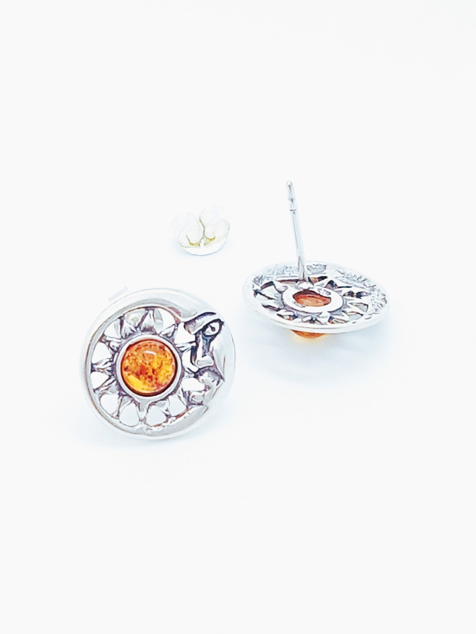 ARETES PEGADOS DE POSTE CON ECLIPSE DE PLATA Y ÁMBAR