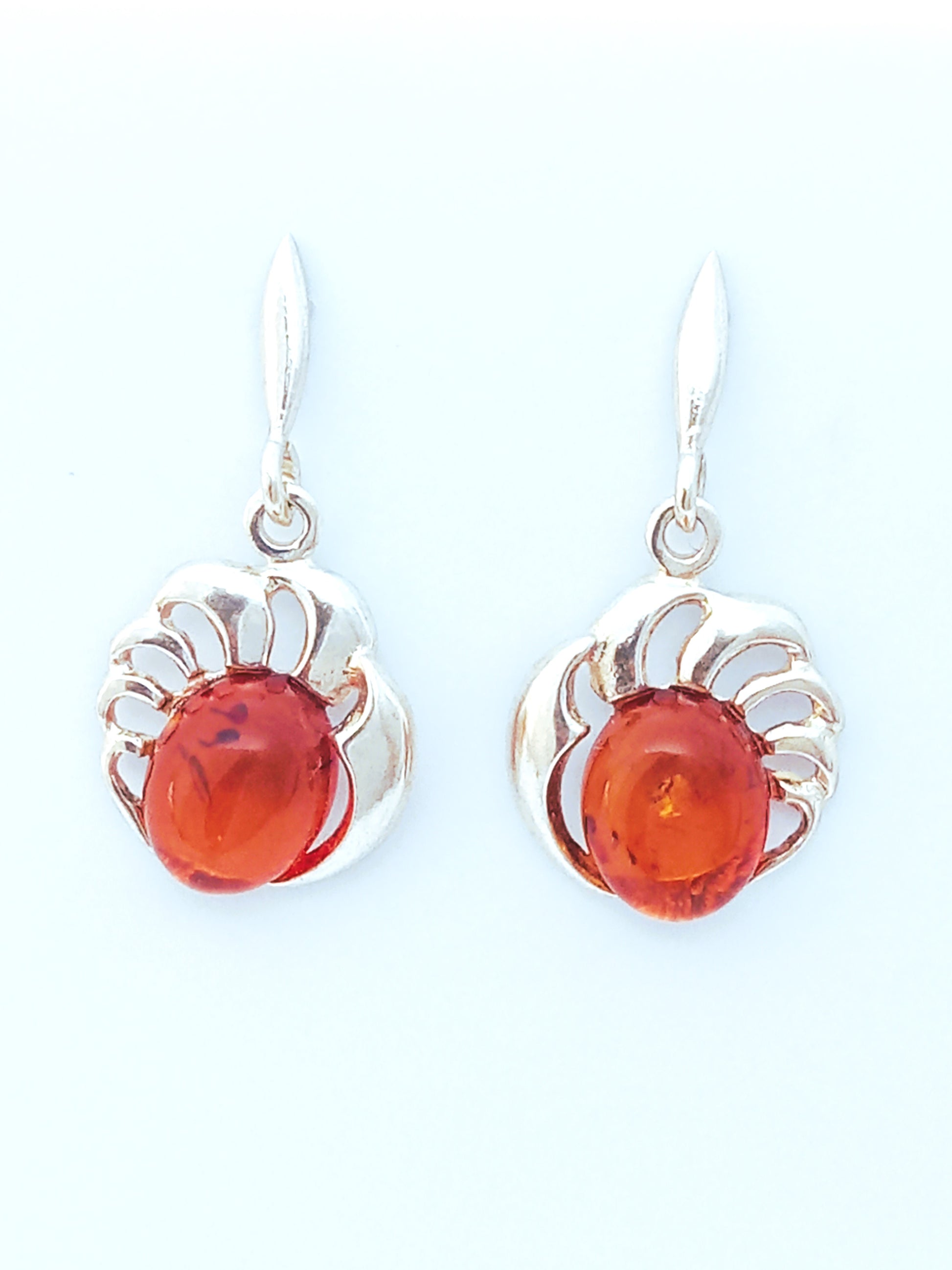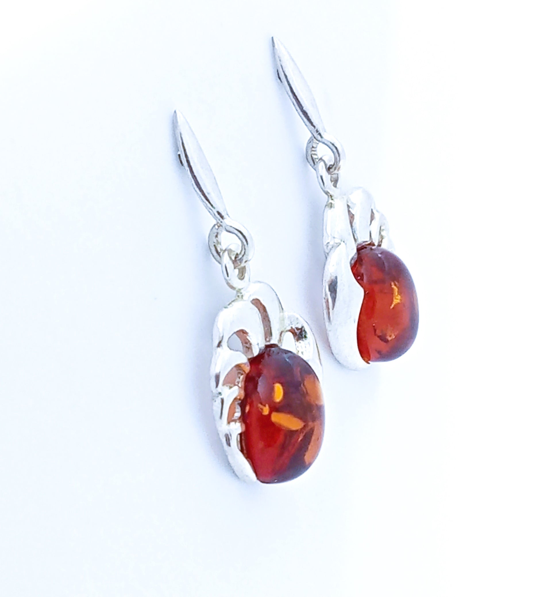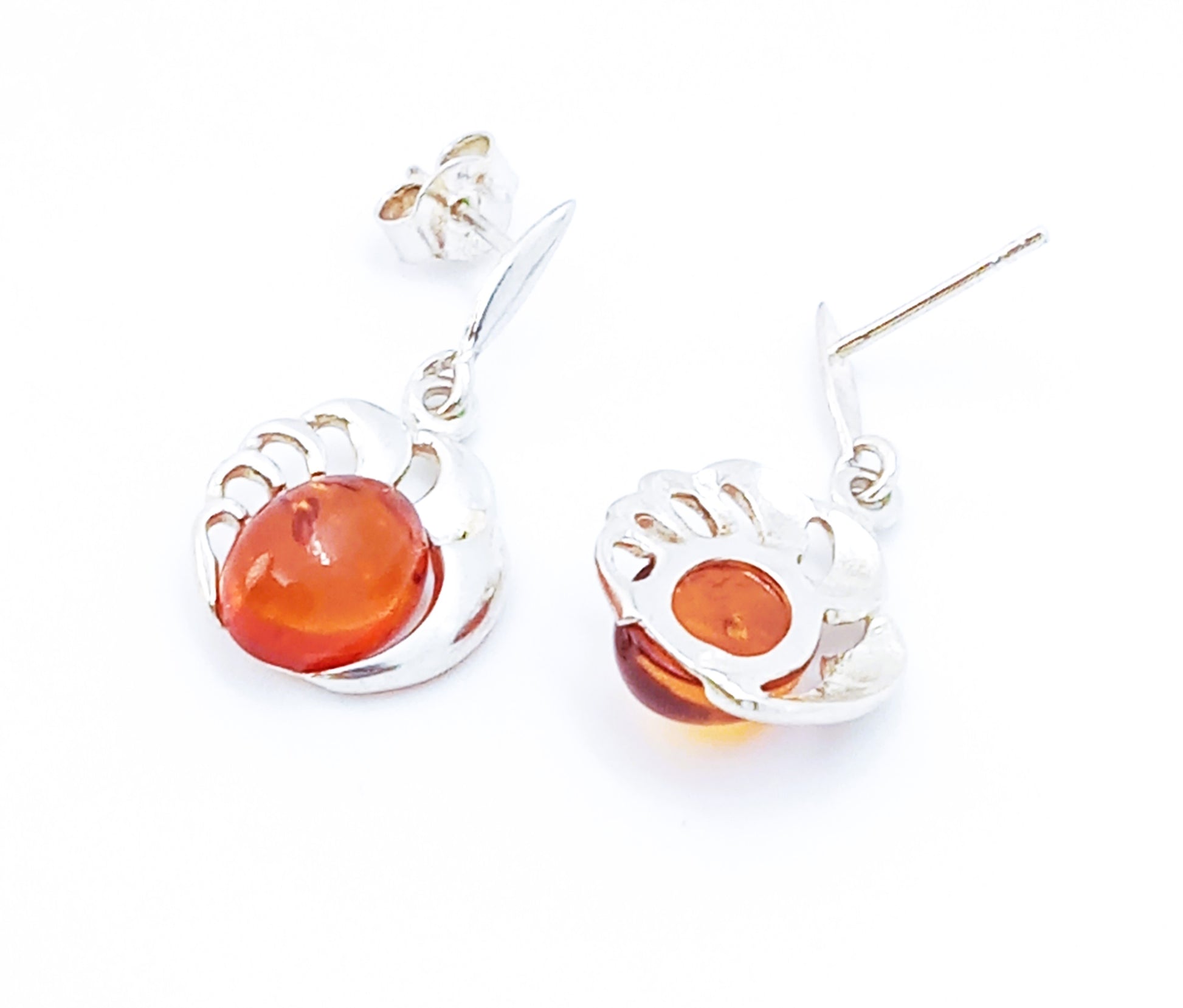 ARETES COLGANTES DE POSTE CON ÁMBAR OVALADO Y FIGURA DE PLATA