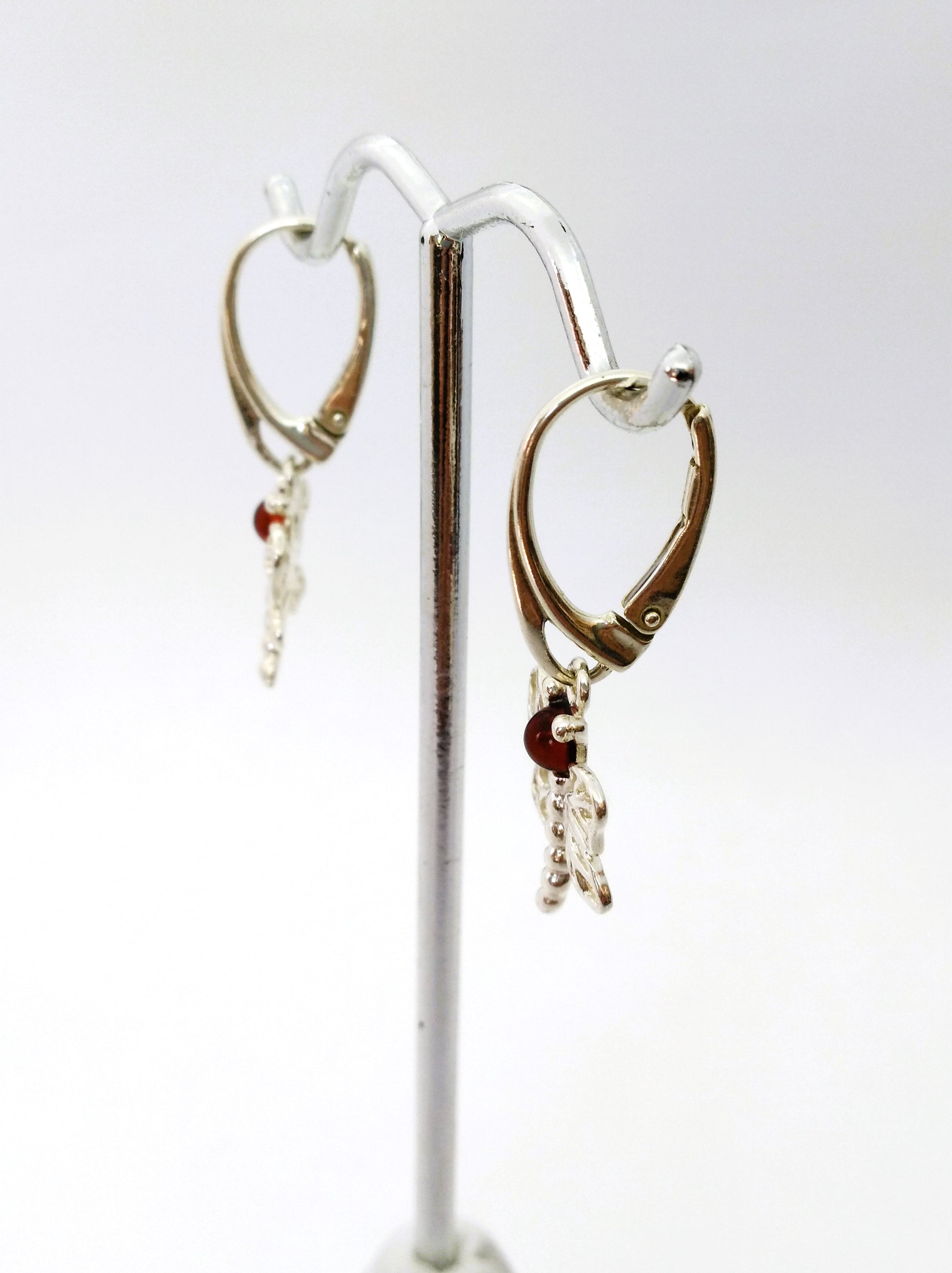 ARETES COLGANTES DE GANCHO CON ÁMBAR CIRCULAR Y LIBÉLULA DE PLATA